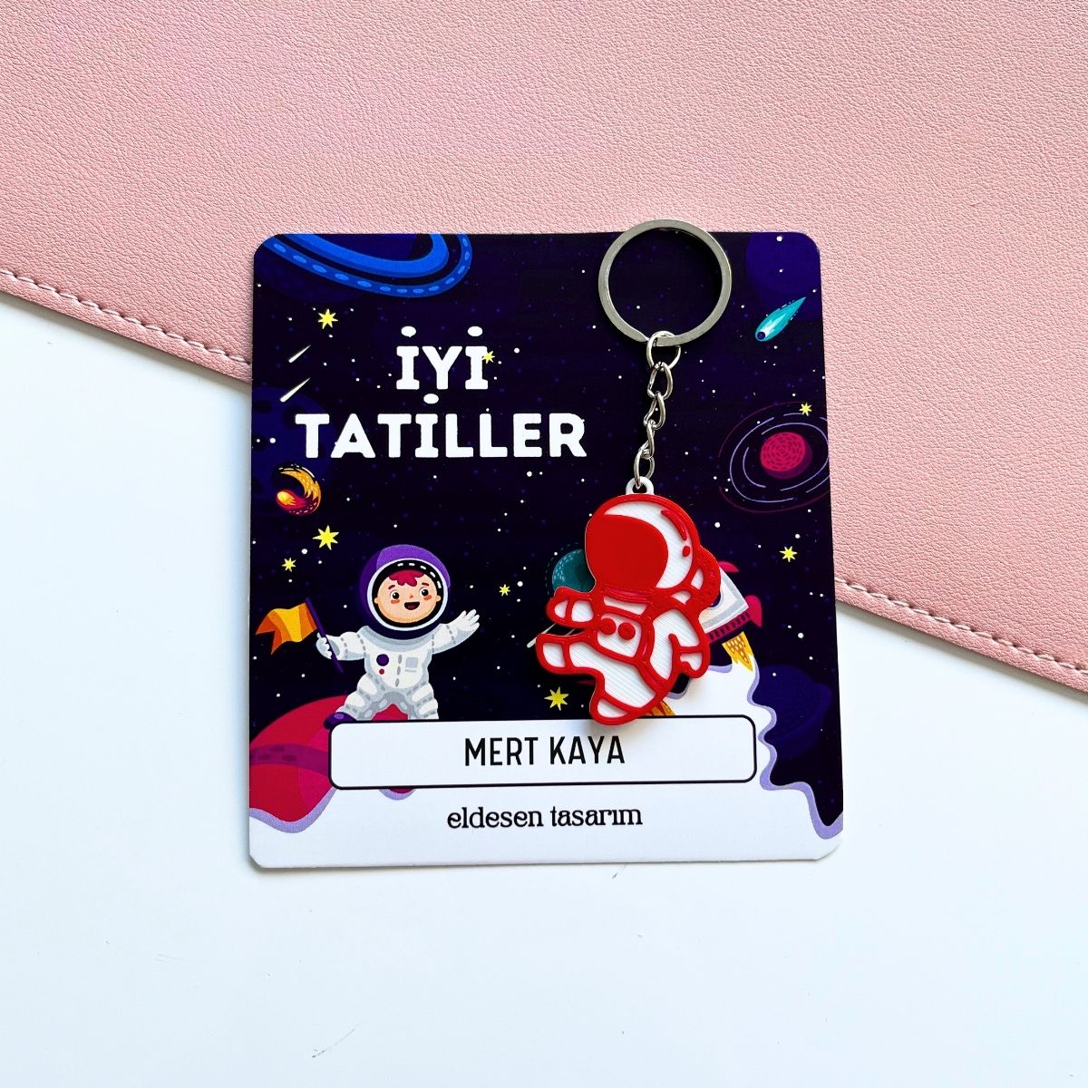 Astronotlu İsme Özel Kartlı Anahtarlık
